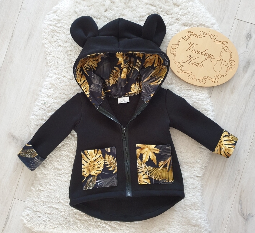 Płaszczyk CZARNY ZE ZŁOTYMI LIŚĆMI