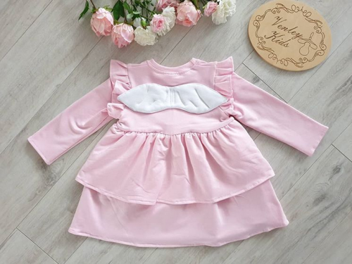 Sukienka z podwójną falbanką, tył plecków ozdabiają skrzydełka