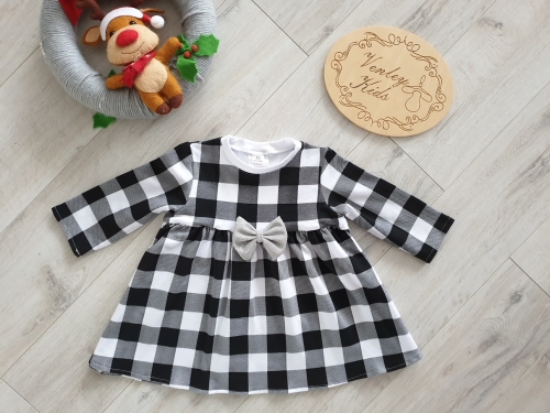 Sukienka czarna kratka z kokardką