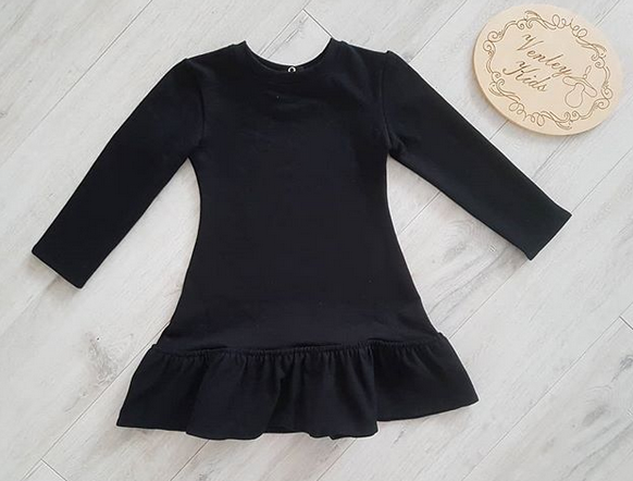 Sukienka delikatnie rozkloszowana z doszytą na dole falbaną .