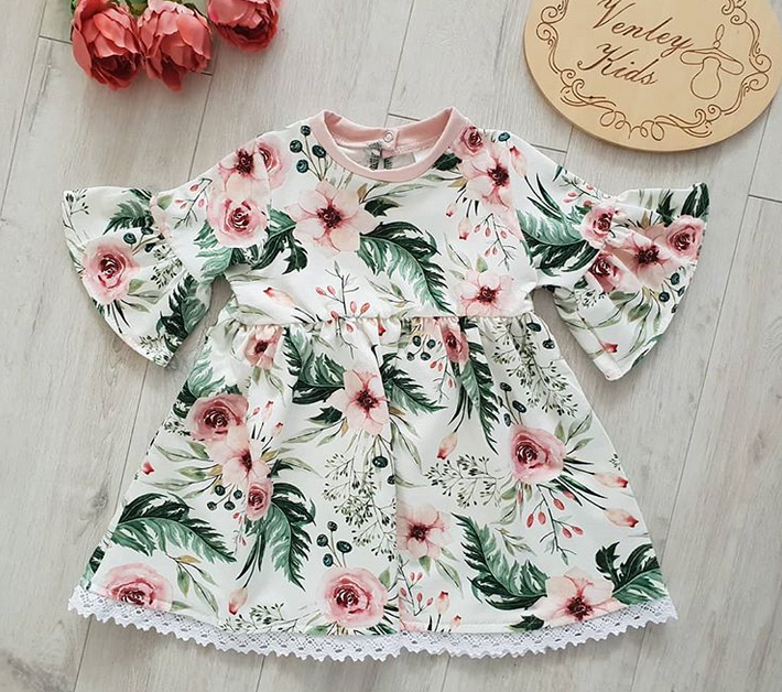 Sukienka rozkloszowana , z krótkim poszerzanym rękawkiem
