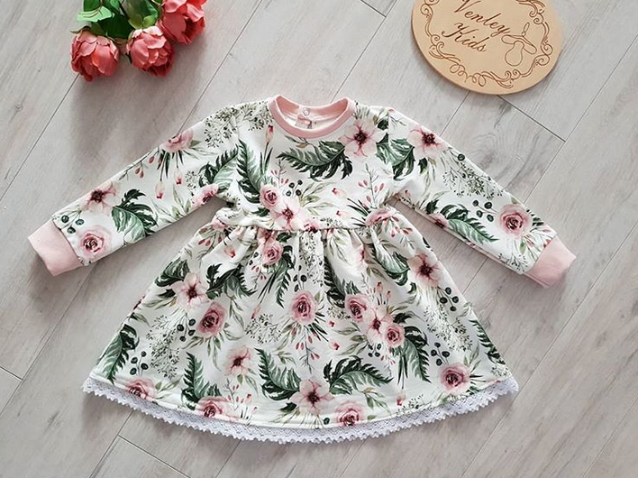 Sukienka rozkloszowana wykończona bawełnianą koronką .