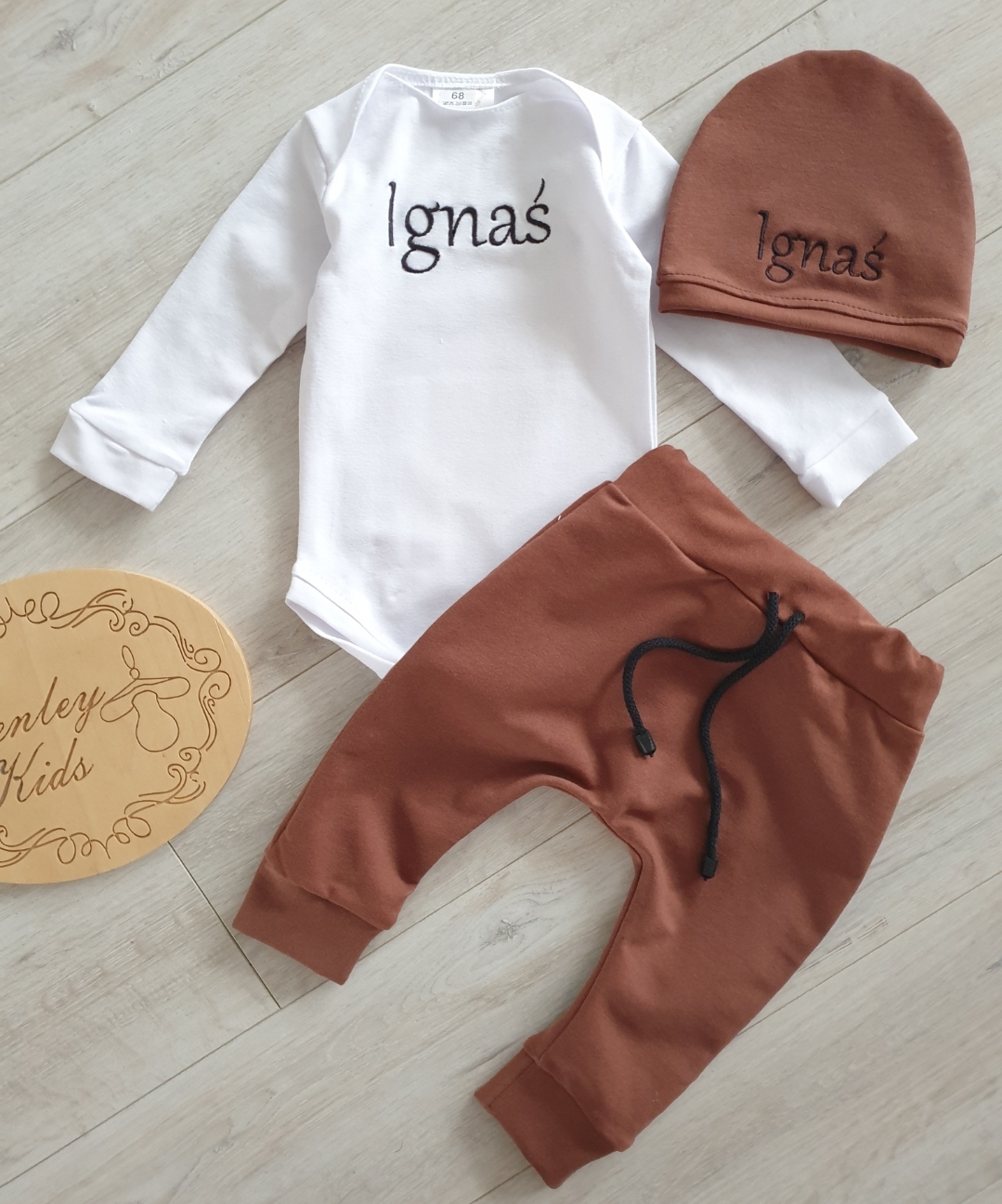 * w skład kompleciku wchodzą : Body lub bluzeczka , spodnie i czapeczka