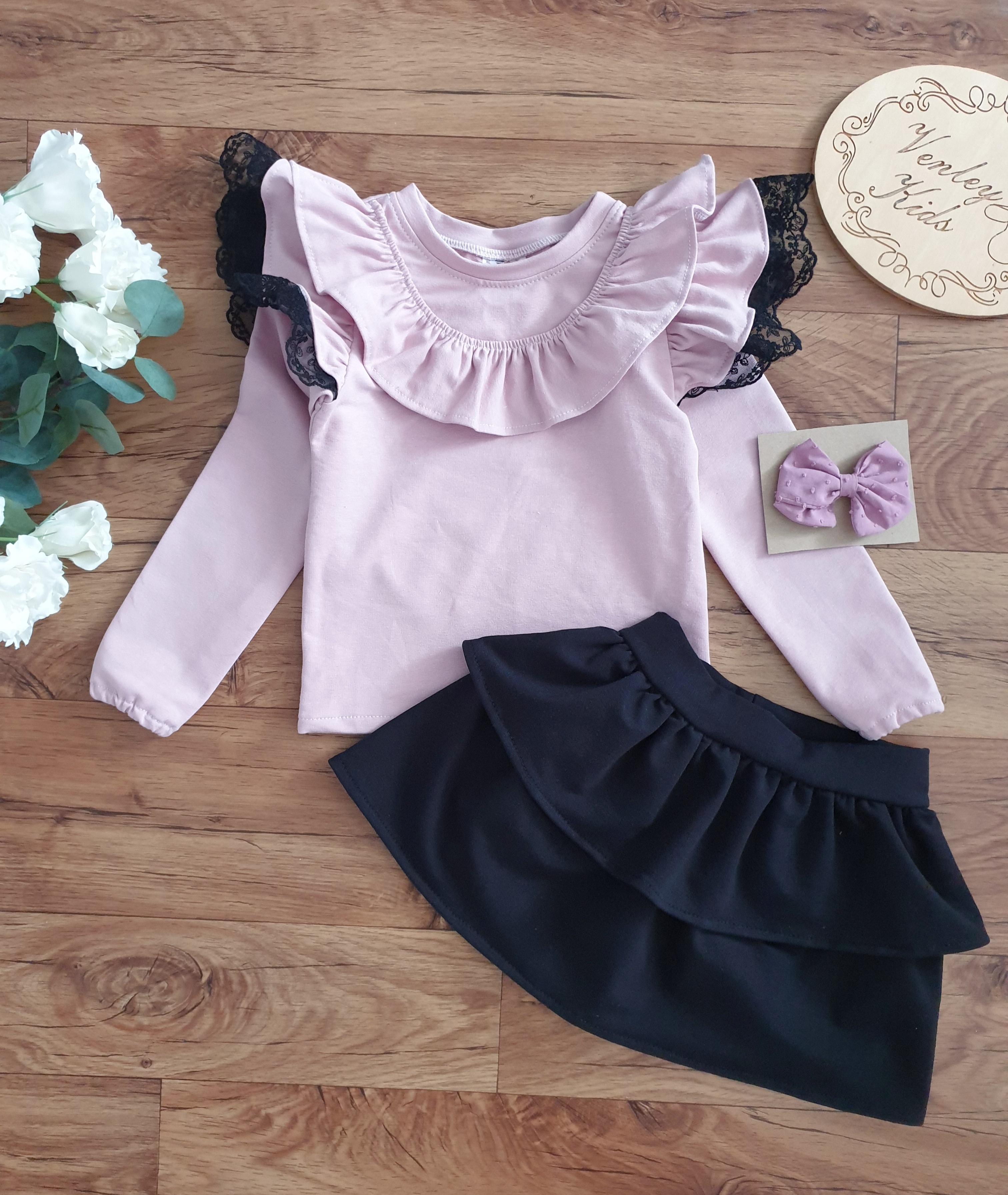 Bluzka z falbankami, ozdabianymi koronką, rękawek z gumeczką