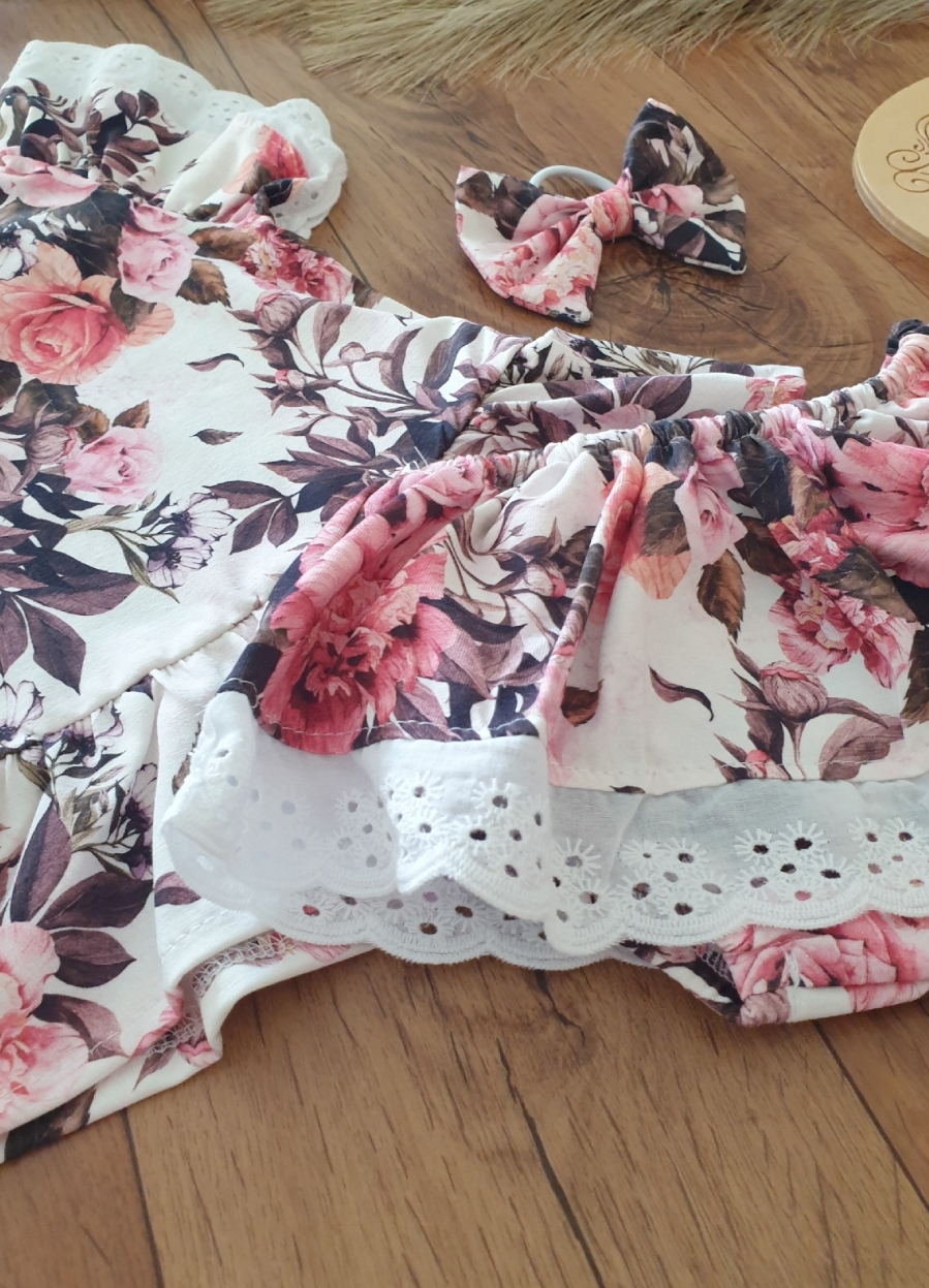 Blomers z falbanką imitującą spódniczkę, ozdabiana haftem angielskim