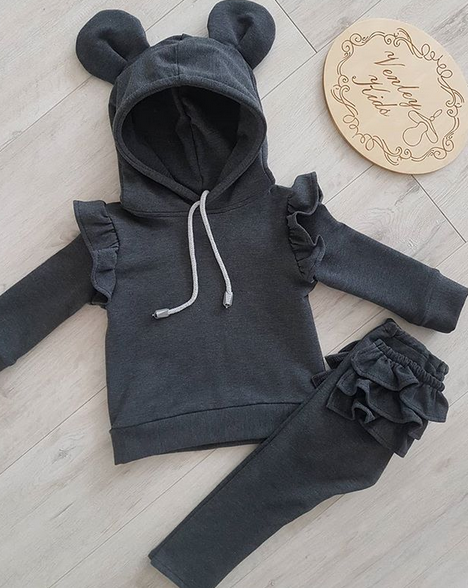 Zestaw Miki z falbankami grafit 2 el