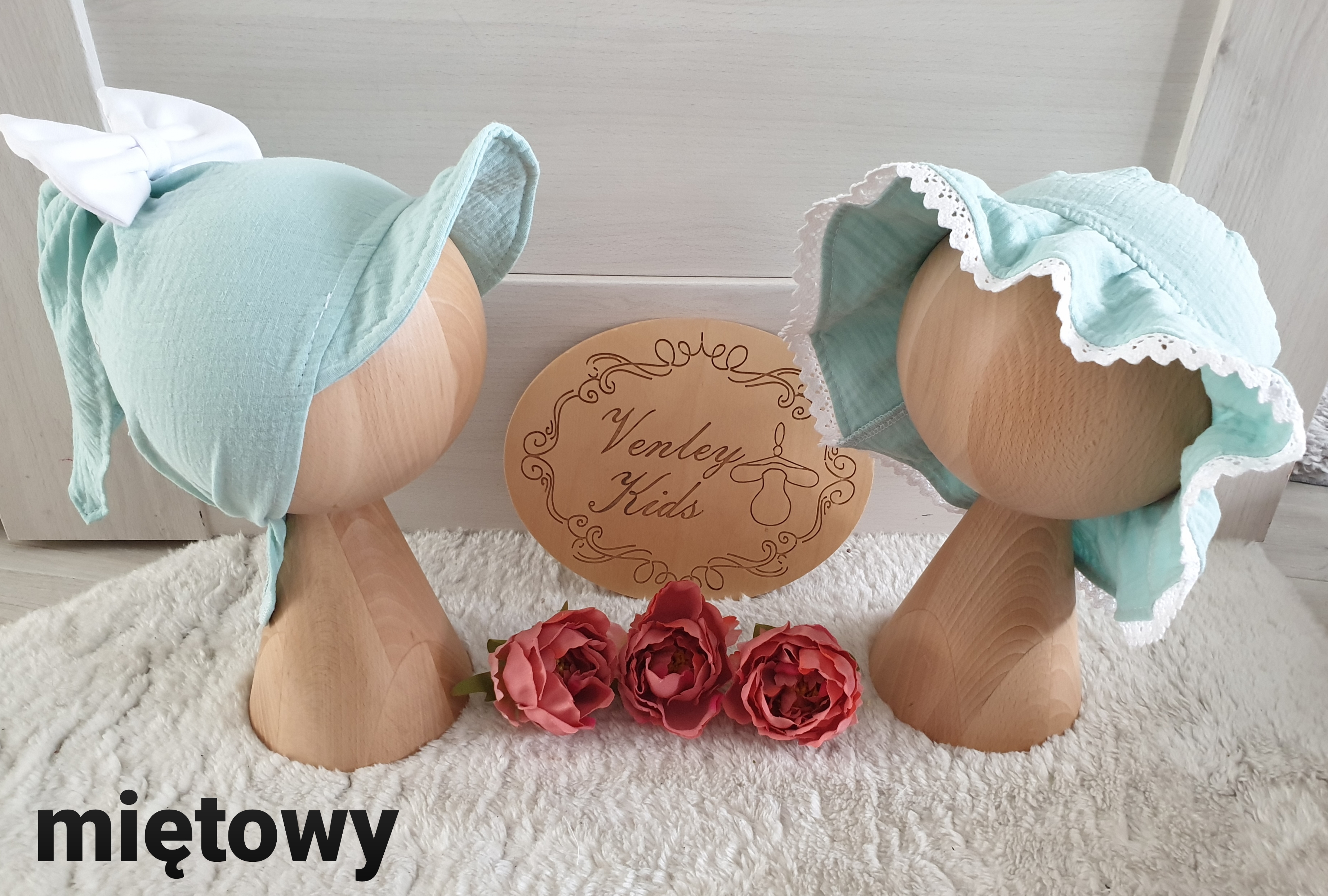 Chusty : Świetnie nadają się na upalnie dni. Ochraniają buźkę przed słońcem , uszy przed wiatrem . Rozmiary uniwersalne, pasują na noworodka oraz dla starszych dzieci. Do samodzielnego wiązania.