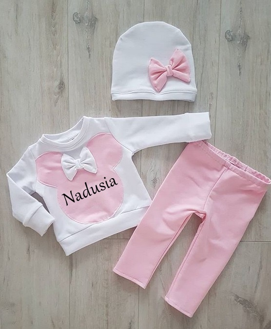 - Bluza z aplikacją myszki , ozdabianej kokardką, na myszce wyhaftowany jest dowolny napis -> TEKST