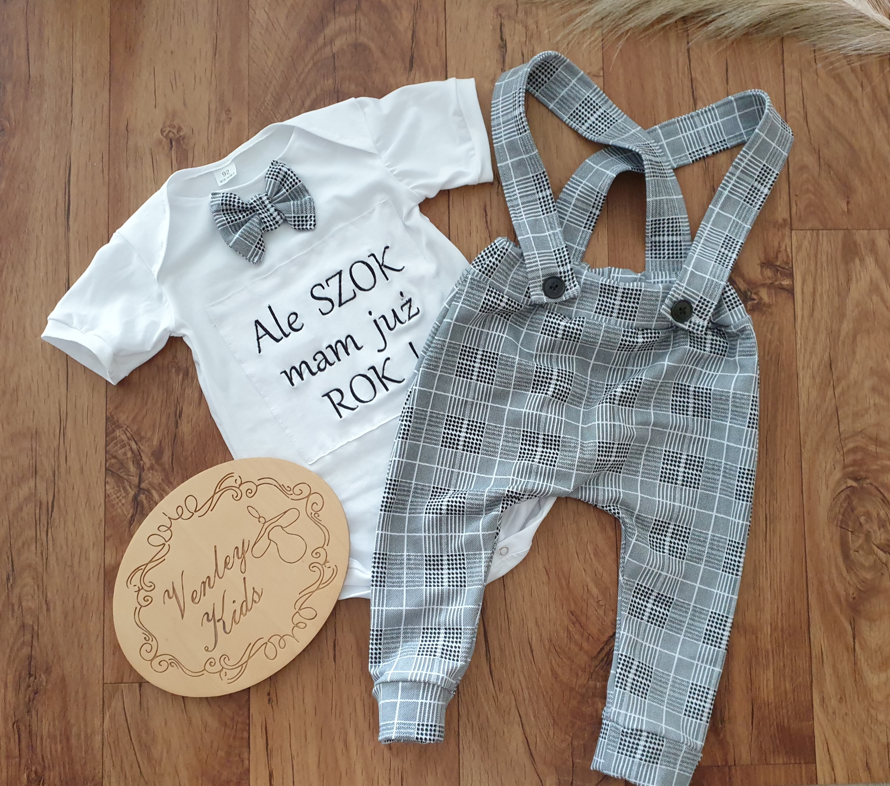 Zestaw siwa kratka personalizowany 2 el