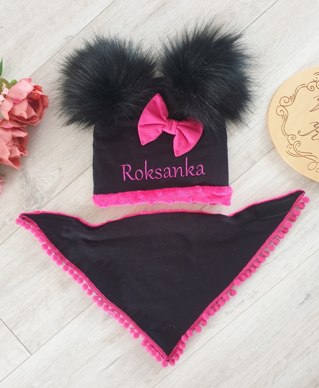 Czapka z kokardką i 2 pomponami -> IMIĘ