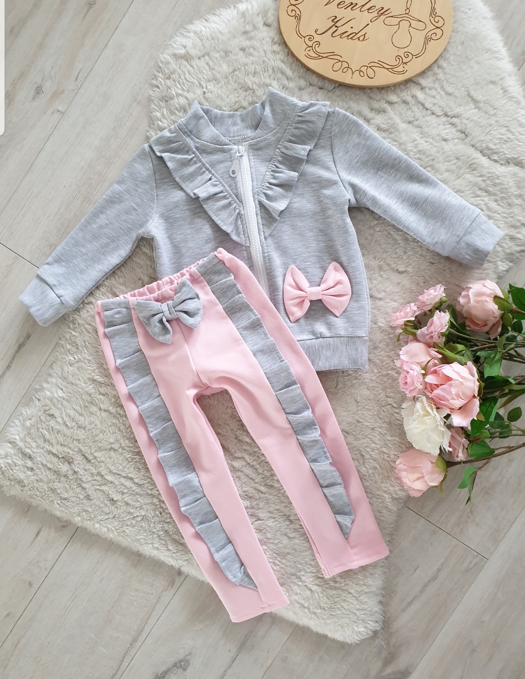 Zestaw z falbankami zamek siwy z pudrem