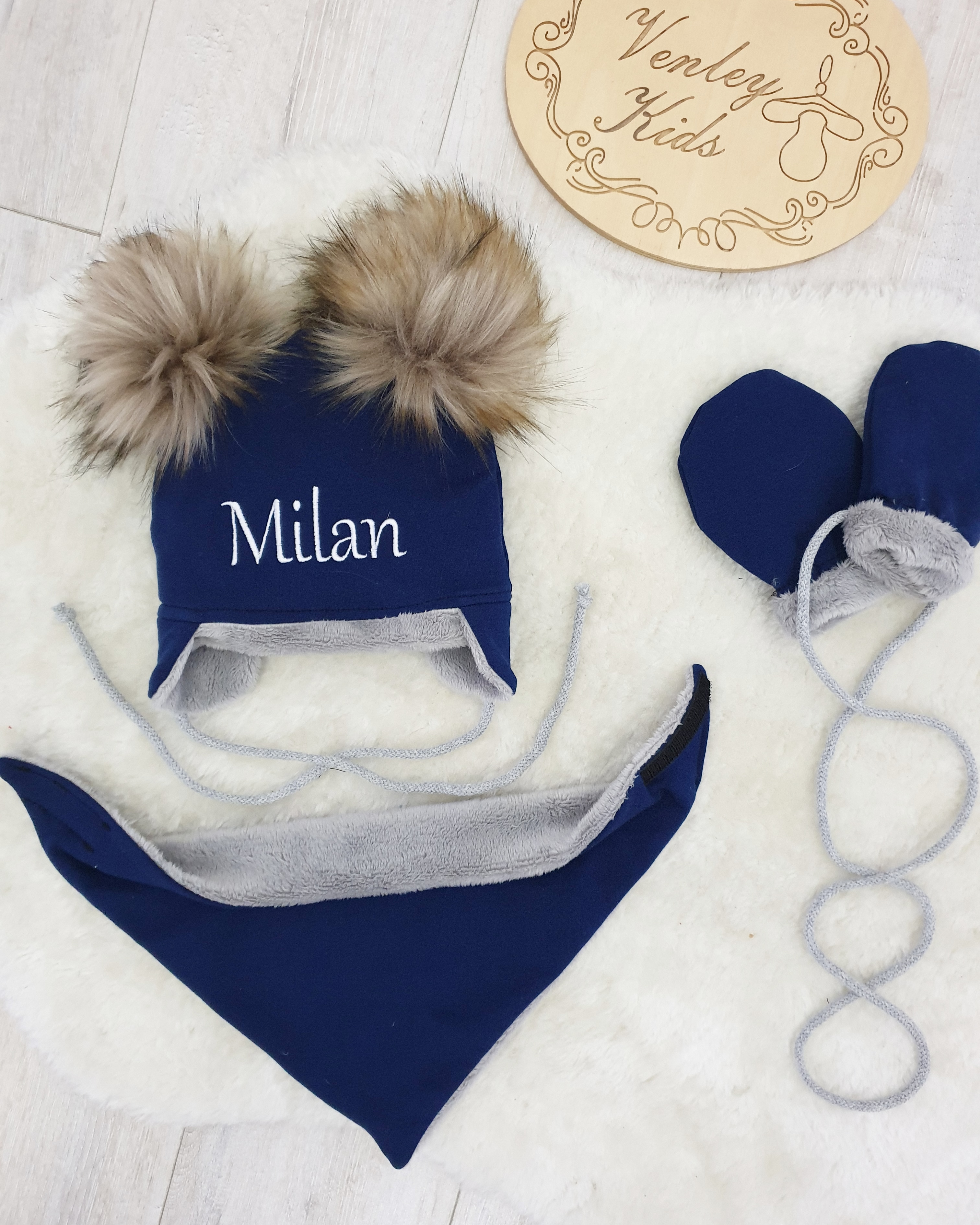 - Czapeczka wiązana z dwoma pomponami , imię dowolne -> IMIĘ